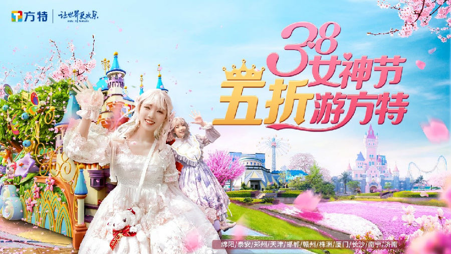 為回饋廣大女性游客,3月5日至13日,綿陽、泰安、鄭州、天津、邯鄲、贛州、株洲、廈門、長沙、南寧、濟南等11座城市的方特主題樂園陸續推出累計長達9天的“女士專享半價門票”活動。活動期間,女性游客通過“方特旅游”APP、微信小程序以及各地方特主題樂園的微信公眾號等官方渠道,僅需5折半價即可預訂專屬“女神票”(各樂園優惠時間以購票頁面為準)。