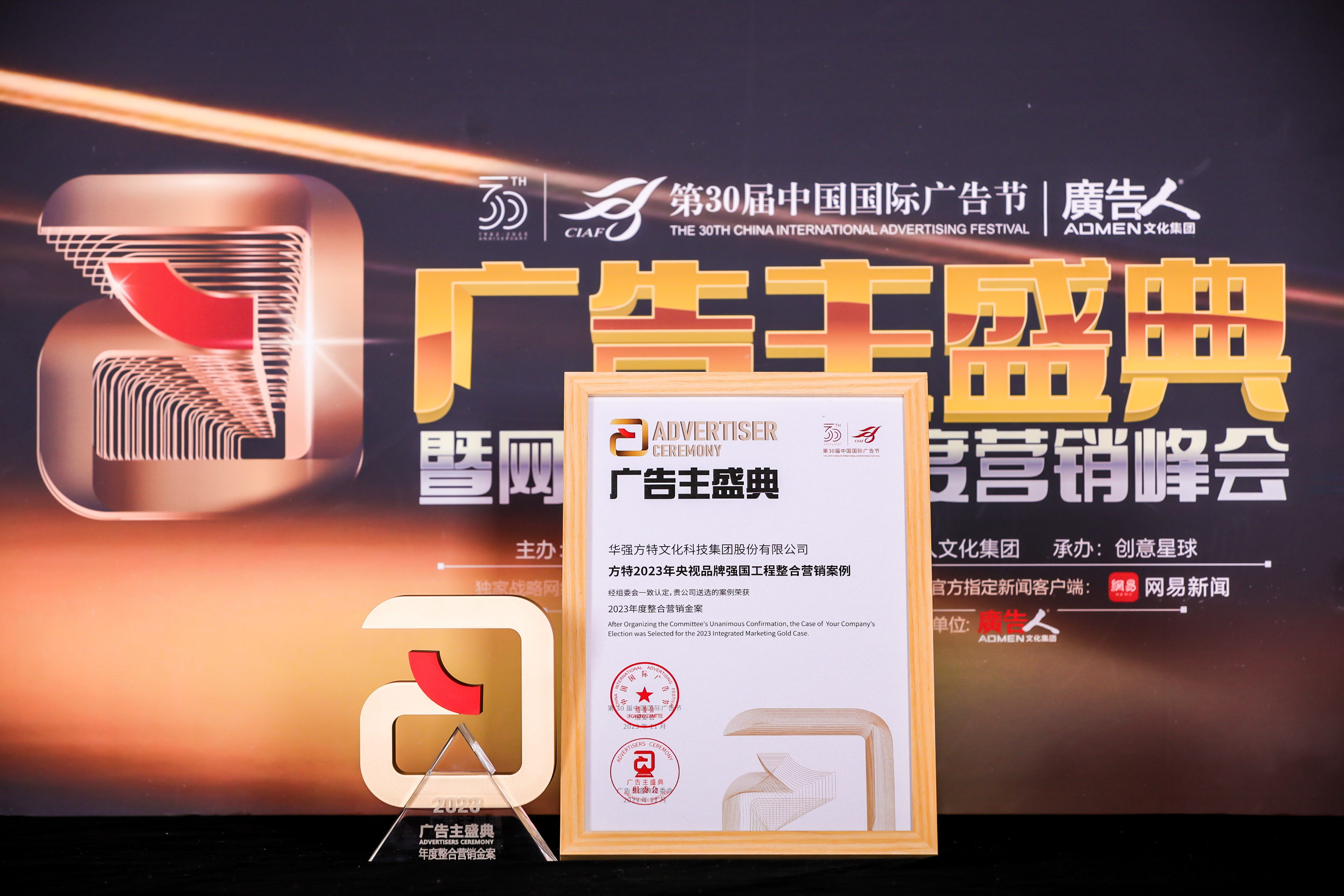 近日,第30屆“中國國際廣告節?廣告主盛典”在廈門落下帷幕。在數百位廣告主企業、媒體平臺、品牌服務機構的代表見證下,由華強方特集團選送的“方特2023年央視品牌強國工程整合營銷案例”,憑借國家級媒體和文旅領跑企業跨領域、全方位的出色合作,摘得“2023年度整合..